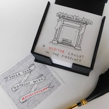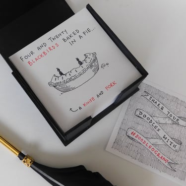 Keep drawing all year round! Think of this as a memo-block with half-completed doodles on every page, waiting for you to add the finishing touch. I designed this product prototype during my MA as a way to combine my love of whimsical goth aesthetics with a handy tool for forming a daily drawing habit.